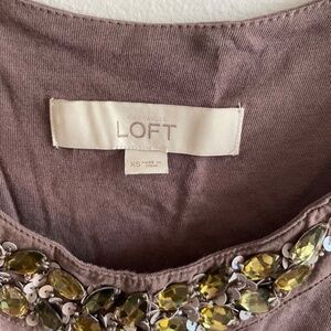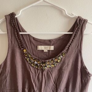 Ann Taylor LOFT purple brown sleeveless dress. Jersey knit dress with embellished neckline. All beading intact.