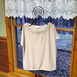 LOFT Embellished Taupe Sz. XL Sleeveless Blouse
