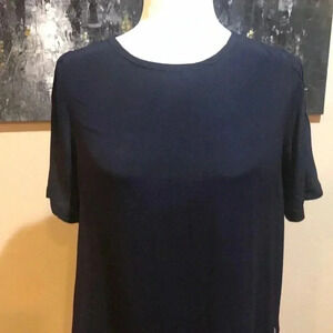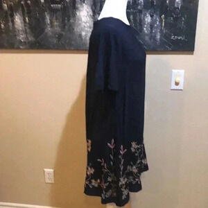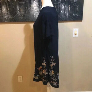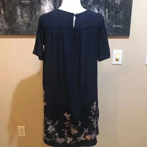 LOFT Embroidered Navy Blue A-Line Sheer Dress, Size XS