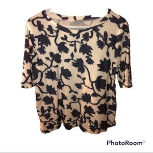 Loft Brand Embroidered Stitched Floral Vine Navy Blue Knit Top