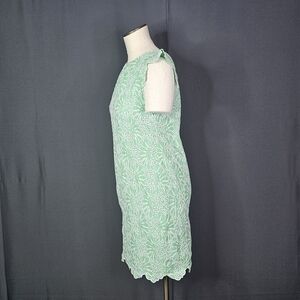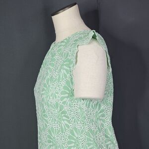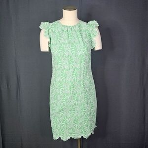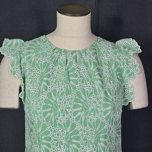 LOFT Eyelet Flutter Sleeve Shift Dress Size 2P Green Short Sleeve Embroidered