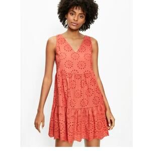 LOFT Eyelet Lace Cotton Babydoll Mini Dress V-Neck Slvls Burnt Orange Size XS