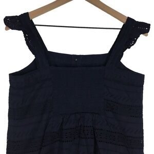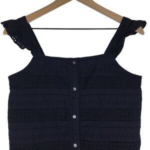 LOFT Eyelet Lace Shell Tank Top Ruffle Smocked Button Details Petite Size Medium