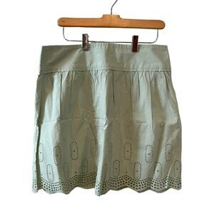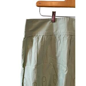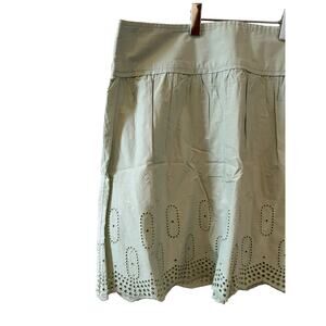 New LOFT Sage Green eyelet embroidered prairie skirt, size 10. Wide waist, back Zipper, fully lined, 100% cotton