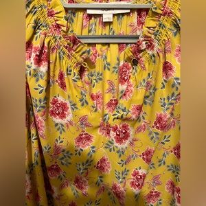 LOFT Eyelet Ruffle Button Neck Top XS