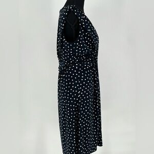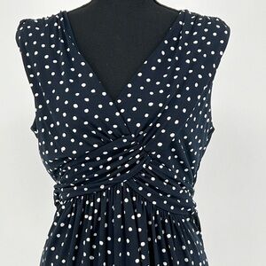 LOFT FACTORY DRESS SIZE 8 NEW WITHOUT TAGS. NAVY BLUE WITH WHITE POLKA DOTS SLEEVELESS WITH A VNECK, BODICE IS LINED, WELL MADE AND FLATTERING STRETCH.