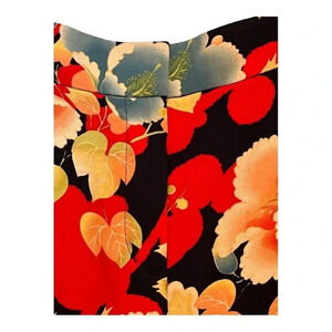 Loft Floral Wide Leg Crop Pants, bright flowers in red, yellow, and blue on a black background, front and back pockets, zip fly with hook closure, beautiful, size 8.