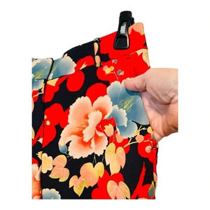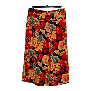 LOFT FLORAL WIDE LEG CROPPED PANTS BRIGHT RED YELLOW BLACK POCKETS SIZE 8