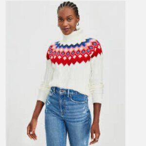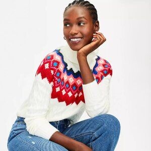 LOFT Fair Isle Turtleneck Cable Knit Sweater S
