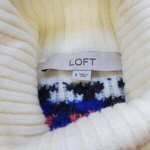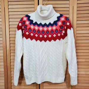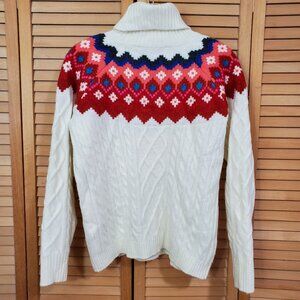 LOFT Fair Isle Turtleneck Cable Knit Sweater Size S In Very Good Pre-Owned Condition. Retail: $79.95. Cream/Red Multi.