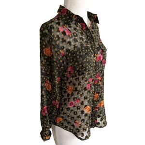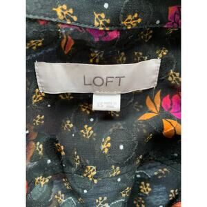 LOFT Fall Floral Utility Blouse Shirt Top Black Sheer Button Up Collared Size XS