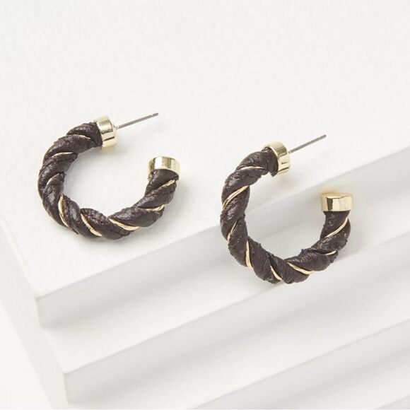 LOFT | Faux Leather Hoop Earrings | Deep Cacao