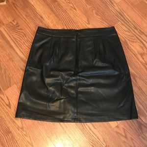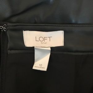 Flattering and cool faux leather a line skirt from Loft. Zip up back and pockets. Worn a few times, absolutely no wear. Size 10. Love this skirt! I lost some weight and purchased a smaller size to replace this.