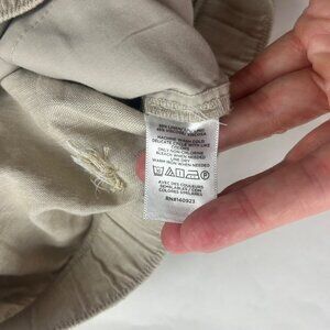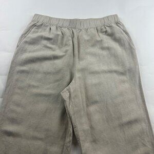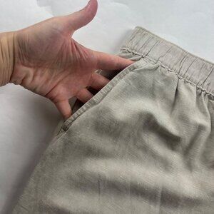 Excellent used condition, linen blend lightweight pant has no notable signs of natural wear or overuse. 4 pockets, full elastic waist, wide legs. Size Large, please reference measurements for sizing & fit inquiries.