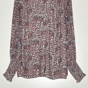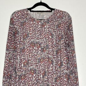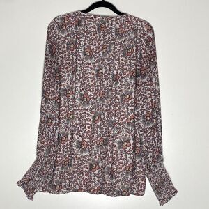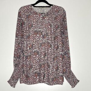 LOFT Floral Boho Henley Smock Cuff Blouse Women's Size Medium