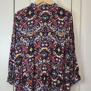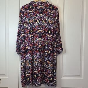 LOFT Floral Button Front Tiered Multicolor Floral Long Sleeve Dress Size XL