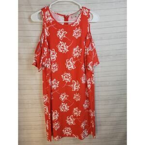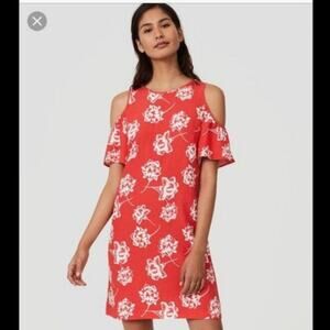 LOFT Floral Cold Shoulder Dress in Bright Red, sz 4
