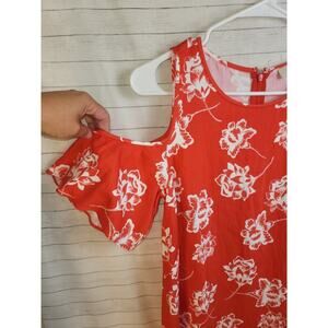 LOFT Floral Cold Shoulder Dress in Bright Red, sz 4