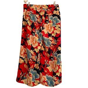 LOFT Floral Culottes Wide Leg 6 Petite Asian Style Pattern Black Red Blue