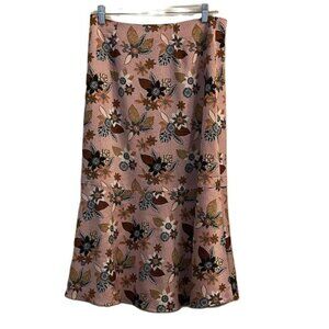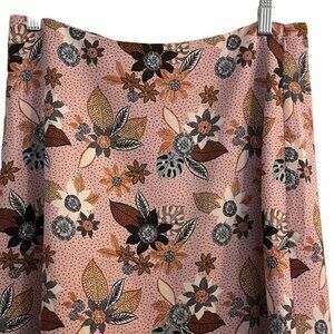 The LOFT Floral Design Lightweight A-Line Skirt in pink and black is a stylish addition to any woman's wardrobe. This 30" length skirt in size 6 features a floral pattern, pull on closure, and is made from lightweight polyester knit fabric. Perfect for various occasions including travel, weddings, casual outings, workwear, and business meetings, this midi skirt is machine washable and lined for added comfort. With a flattering A-Line style and vibrant floral theme, this skirt is ideal for the summer, fall, and spring seasons. Made by the brand LOFT, this skirt is a must-have for any fashion-forward woman. 14" Waist.