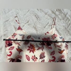 Embrace elegance with this floral print spaghetti strap dress. Perfect for any occasion, this dress features a beautiful blend of colors on a cream background. Ideal for adding a touch of sophistication to your wardrobe.