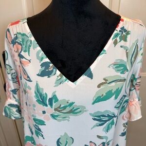 LOFT Floral Flutter V-Neck Top Sz S Short Sleeve