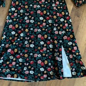 Purchased by me and intended for me; just never wore it. Planned to style it with a western hat and boots but also with sandals and cute earrings. Versatile. Soft. Slit in front for movement and makes it easier to walk, less confining if that makes sense.