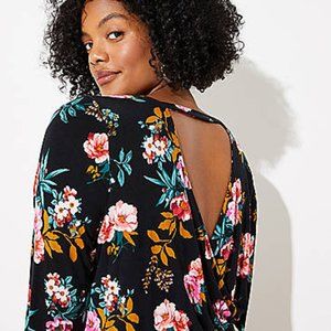 LOFT Floral Open Back Knit Long Sleeve Flare Skater Dress Black Pink 2 NWT