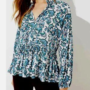 LOFT| Floral Paisley Split Neck Peplum Blouse Peasant Boho Blue | Size Medium