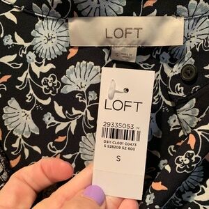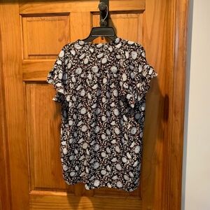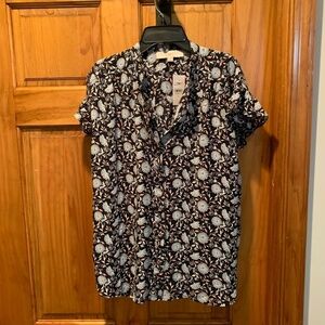 LOFT Floral Print Blouse in navy and light blue. Button front. Short flutter sleeves. Women's size small. New with tags.