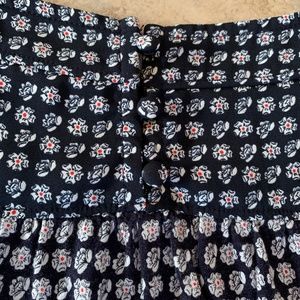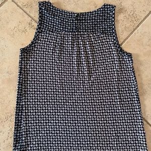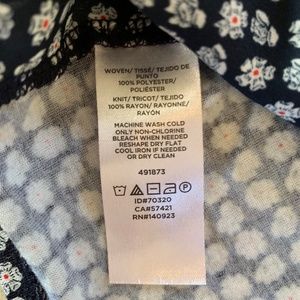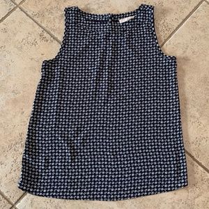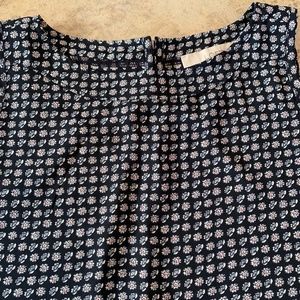 New without tags: LOFT sleeveless top with small floral print on navy background. Boat neck with piped collar. Three buttons up the back toward the collar (seen in the last picture). Mixed media fabric. Woven 100% polyester fabric on the front, and knit 100% rayon fabric on the back. Size XS.