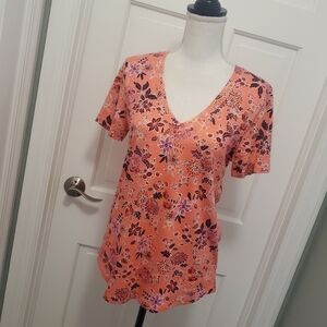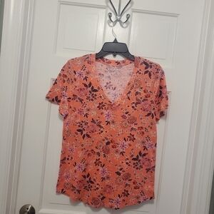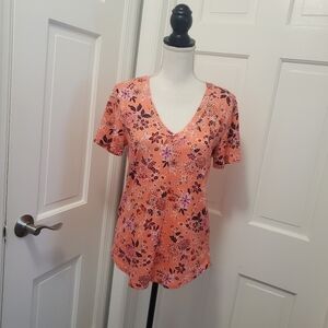 LOFT Floral Print vneck tee shirt 100% cotton Size Small, colorful