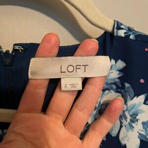 LOFT floral puff sleeve midi dress in beautiful sapphire color