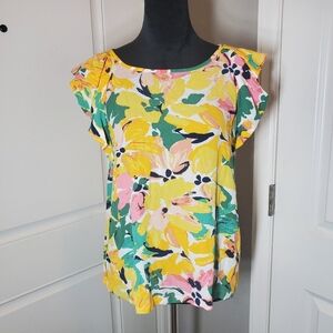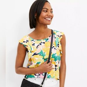 LOFT Floral Ruffle V-Back Shell Women's Size Small NWOT