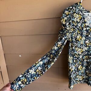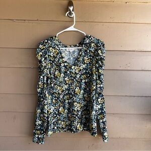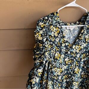 LOFT Floral Shirred Puff Sleeve Top - Size Small - Modest Office Casual