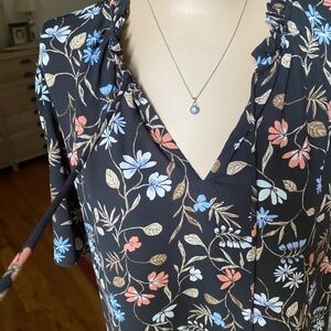 LOFT Floral Shortsleeved Blouse - Mixed Media - Size XL