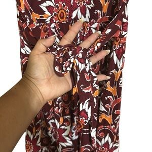LOFT Floral Dress Sleeveless Burgundy Dress Stretch Jersey knit 95% Rayon,5% Spandex