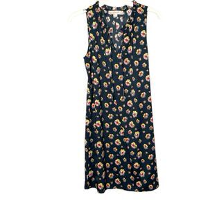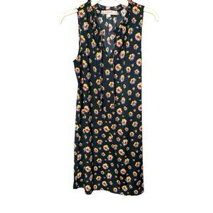 LOFT Floral Sleeveless Tie Neck Mini Dress Women's Size SP green yellow red