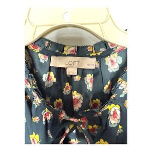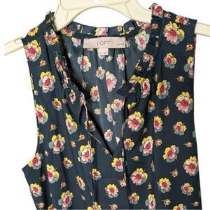 LOFT Floral Sleeveless Tie Neck Mini Dress Women's Size SP green yellow red euc smoke free dog friendly home belt not included romantic trendy preppy feminine 15” bust and 51” length bin 53