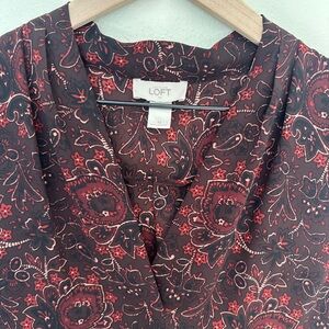 Elegant sleeveless top featuring a striking red and black floral pattern. Perfect for any occasion.