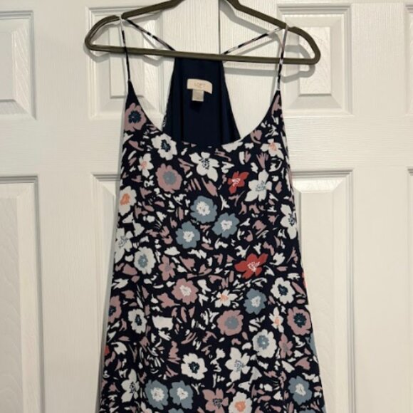 LOFT Floral Swing Dress XL Sleeveless Navy Curved Hem