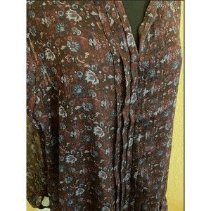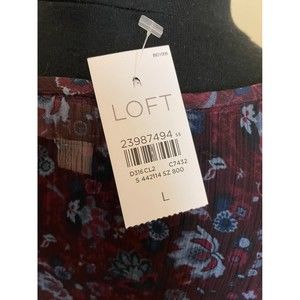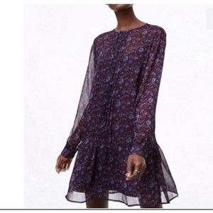 Dark purple/burgundy floral print with sheer overlay, long sleeves, comes with an underneath spaghetti strap dress that is sewn in. Pleated at the chest, front top button, tiered ruffle at the bottom. This is LOFT, brand new with tags and security tag too. Size L