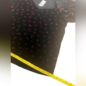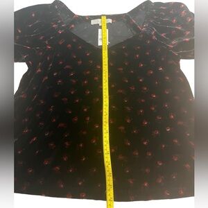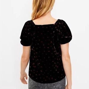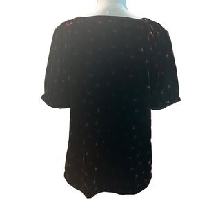 LOFT Floral Velvet Puff Sleeve Top Black & Red Sweetheart Neckline Women’s Small NWT