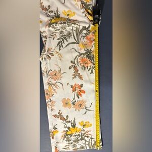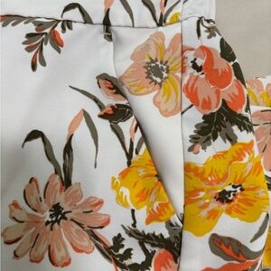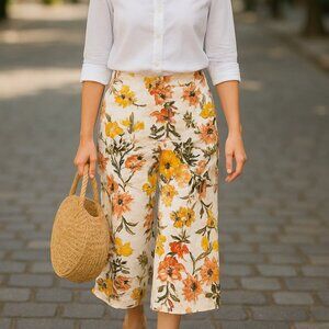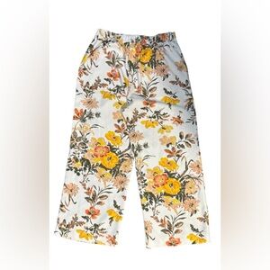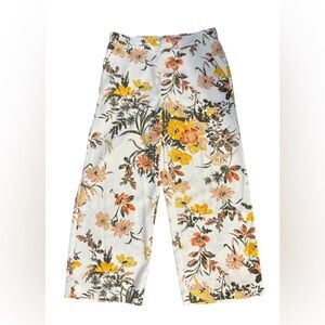 LOFT Floral Wide-Leg Cropped Pants - White, Orange, Yellow, Green Sz M SKU 9