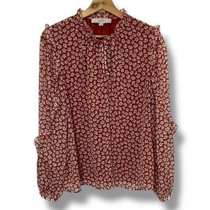 LOFT Floral Womens Top Victorian High Neck Ruffles Size L Sheer Feminine Office
