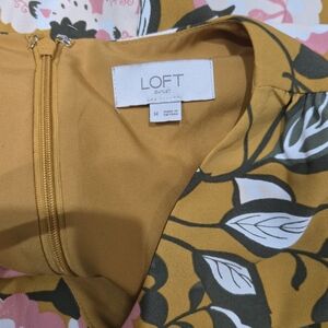 LOFT Flutter Sleeve Tie Waist Floral Ruffle Sleeve V-Neck Dress M