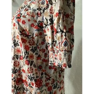 LOFT Forest Smocked neck, Puff shoulder and elasticized cuff sleeves