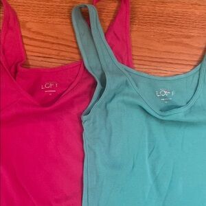 Pair of stylish tank tops in bold fuchsia and turquoise. Perfect for casual outings. Excellent condition. Turquoise nwot and fushia worn once or twice.