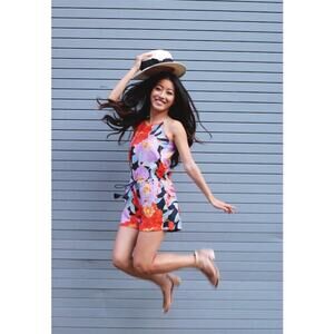 LOFT Full Bloom Romper Size Small Drawstring Waist Resort Vacation