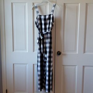 LOFT GINGHAM CHECK PLAID JUMPSUIT BLACK WHITE SIZE MEDIUM